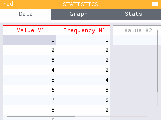 You can also display the cumulative frequency column in the Data tab by selecting the first row of the data table and pressing OK.