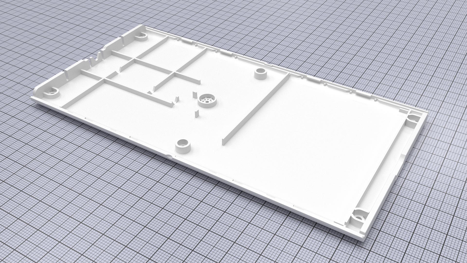 The ribs inside the bottom parts are here to improve the rigidity of the part. Their drawing was made so they don't touch any of the components on the PCB. A large section is left empty for the battery.