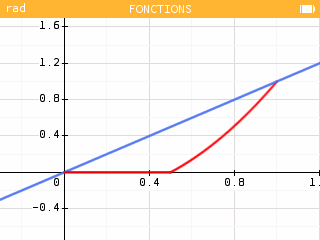 Afin de comprendre le calcul du coefficient de Gini, nous allons maintenant pouvoir tracer sur la calculatrice la courbe représentative de la fonction , ainsi que la droite d'équation .