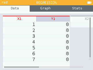 In de Statistiek en Regressie applicaties, twee nieuwe tabellen completeren het Gegevens tabblad om met drie datareeksen tegelijk te kunnen werken.