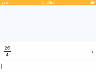 Na aplicação Cálculo, os resultados são exibidos na mesma linha das entradas, se o espaço assim o permitir.